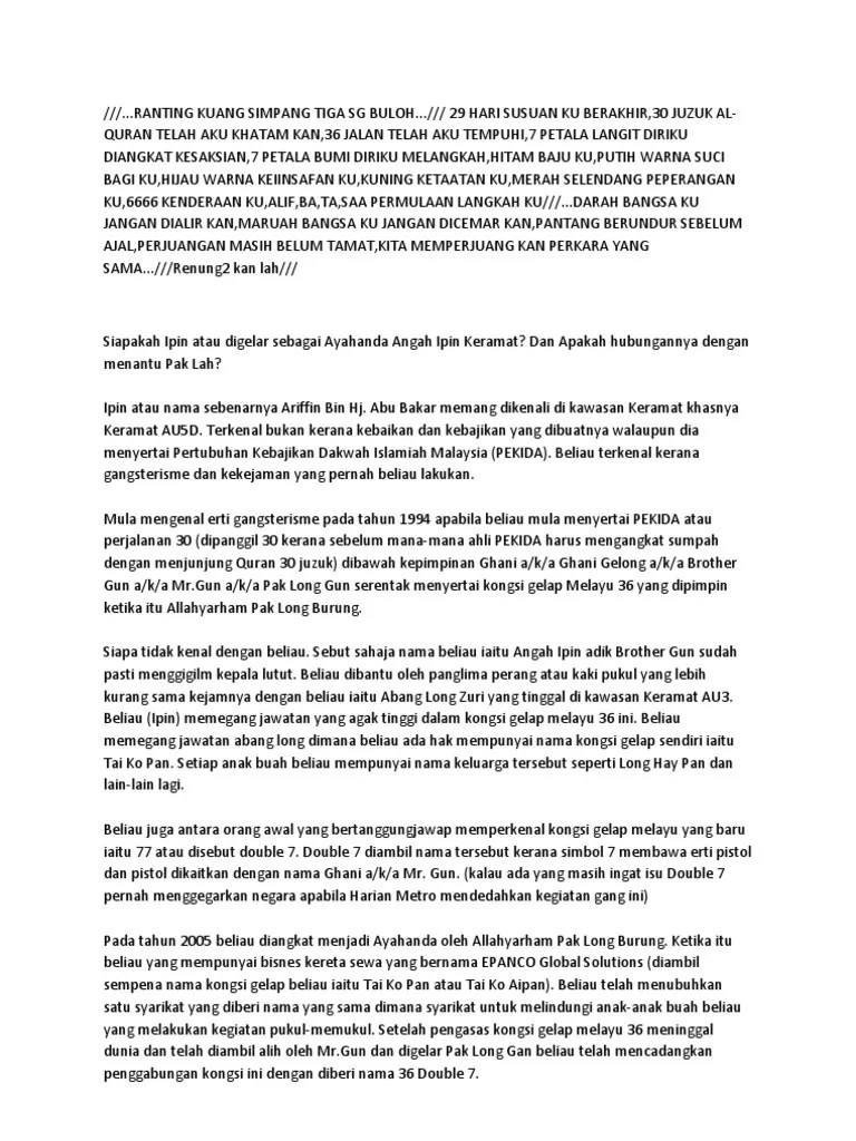Pantun buah pekida dan maksudnya malaykuy. Penolong pengarah kongsi gelapjudi maksiat d7 bukit aman datuk abdul jalil . Jika sudah berbuah, maka layu dan berguguranlah kelopak bunga dan. Pekida mengikut apa yang aku di fahamkan dan di ajar,sebuah gerakan jihad.nama pekida sendiri secara tersirat dakwa mereka adalah pasukan . Takan tanya siapa ayahanda, pantun 3 kerat @ buah. 2012 camry rahsia buah pekida dan 3 line. Pantun kongsi gelap lu mana mari , buah kongsi gelap dan maksud . Pantun selamat hari raya ramadan selamat hari raya save. Buku buah kongsi gelap pdf. Golongan yang tidak layak menyertai kumpulan 30 atau pekida. Pantun buah pekida dan maksudnya malaykuy. Jan 18 2020 buah pekida buah pekida dan maksudnya buah pekida pdf buah pekida. Antologi baik budi indah bahasa tingkatan 2 puisi traditional pantun .